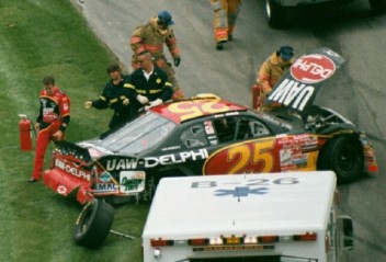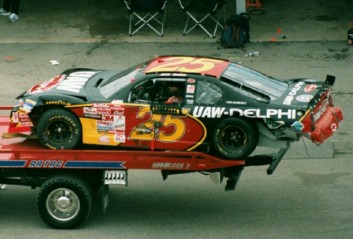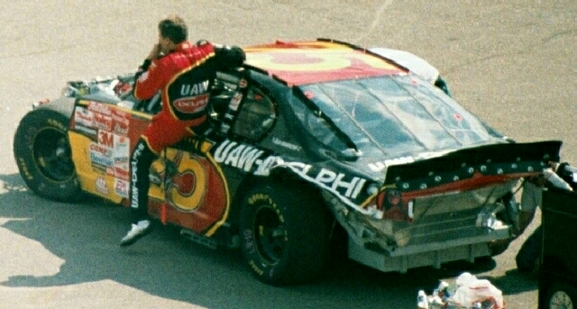 Jerry Gets Out of the Battered #25 UAW/Delphi Car After a Long Day at the Monster Mile! |